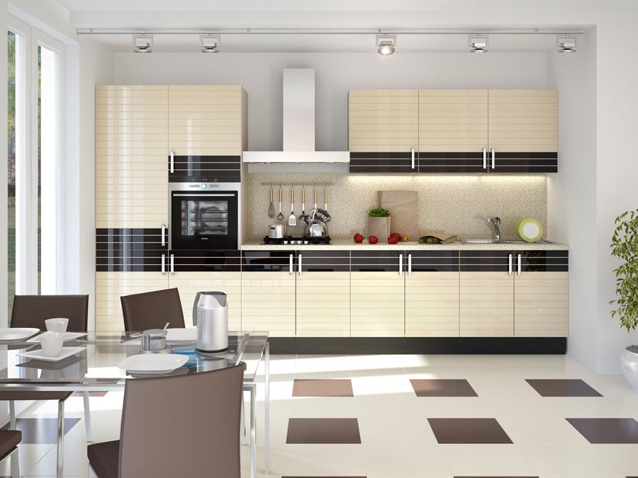 Глянцевые кухонные гарнитуры смотрятся стильно и современно. Они создают эффект зеркальности поверхности, визуально расширяя пространство и делая помещение зрительно просторнее. Но глянцевые фасады проявляют низкую устойчивость к механическим повреждениям, легко царапаются и остаются следы после прикосновений.